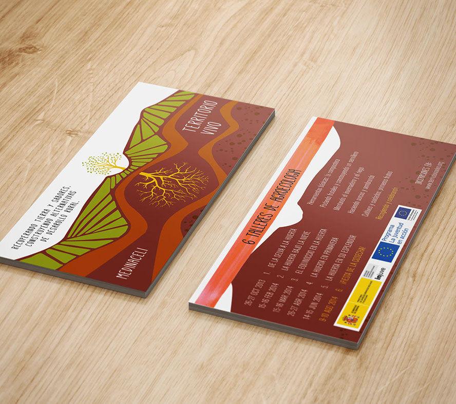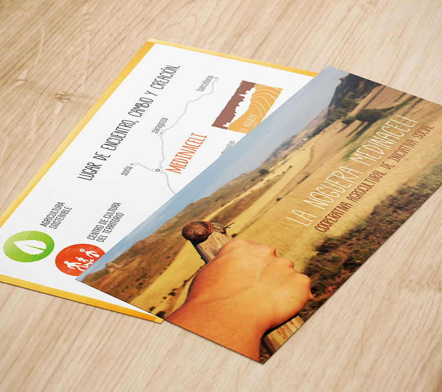 LA NOGUERA - logo + cards + flyers -  Commissioned to create brand new identity for La Noguera, including flyers for their first lift off workshops. La Noguera is an ecological agricultural cooperative that does sustainable farming, local culture and rural development in Medinaceli. Its core principles is education, preservation of the environment and welfare of present and future generations. Sponsored by the European Union.