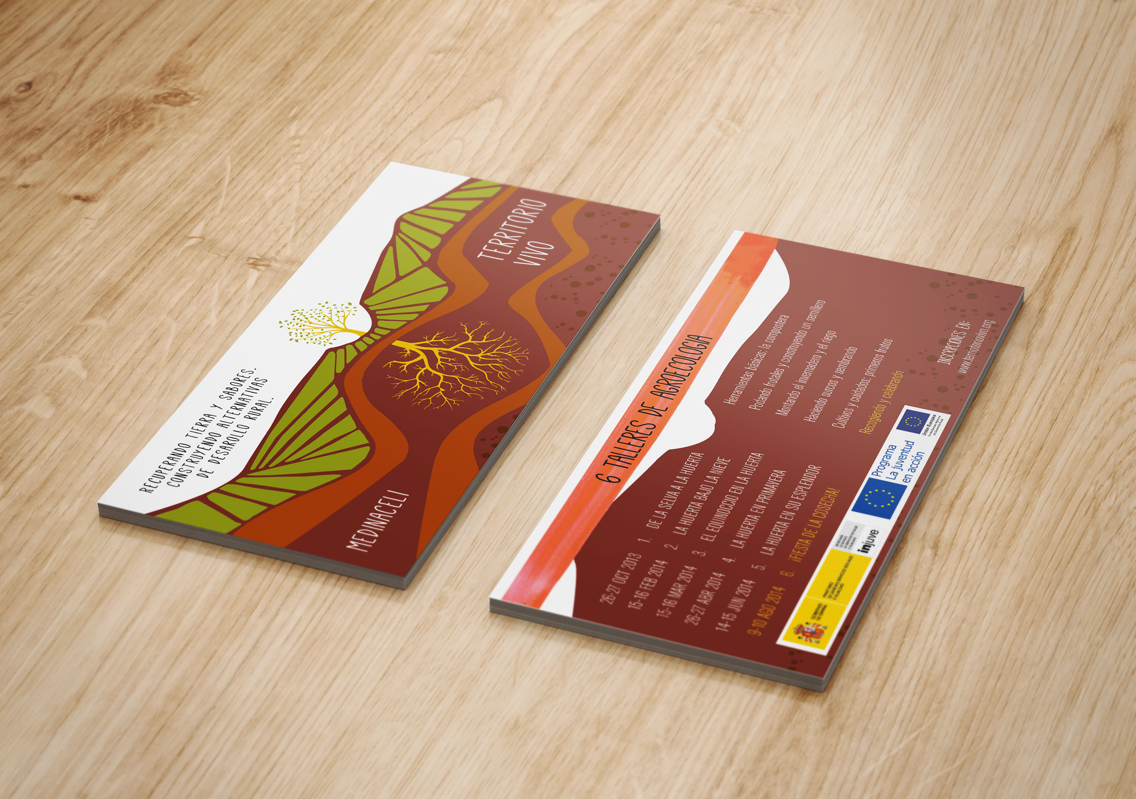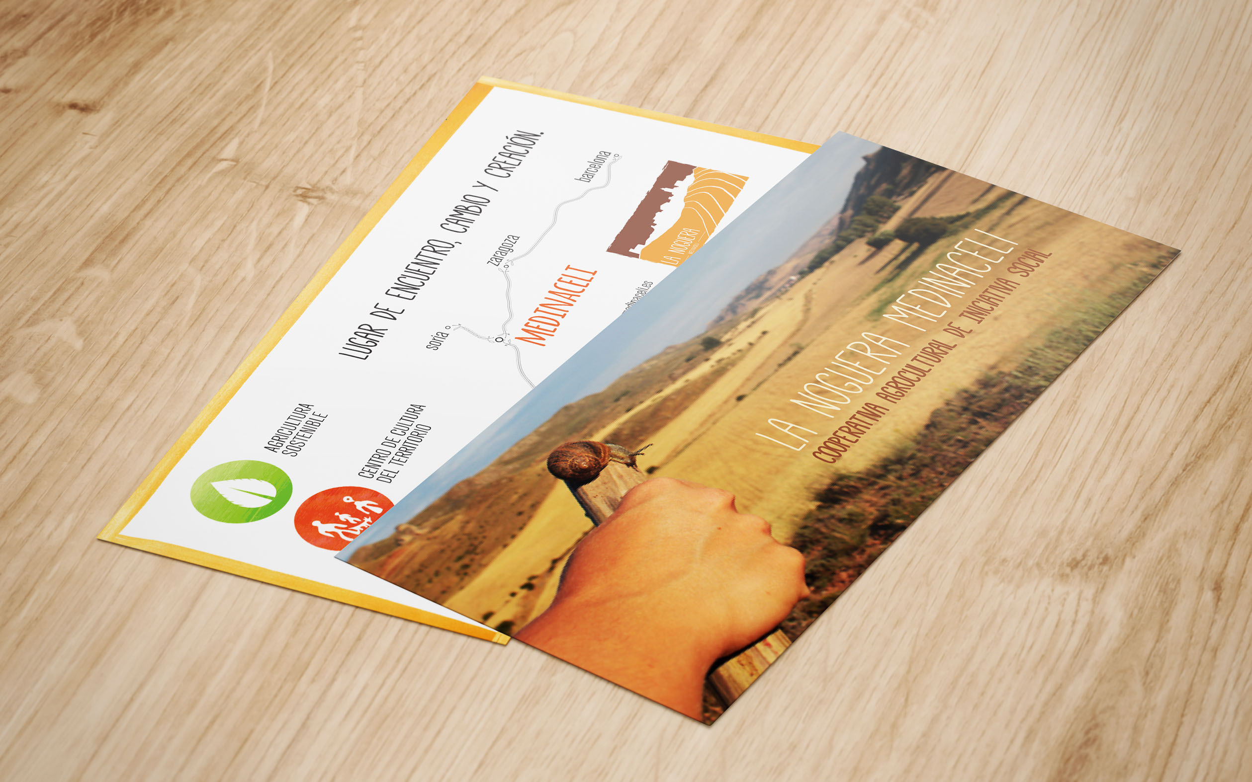 LA NOGUERA - logo + cards + flyers - Commissioned to create brand new identity for La Noguera, including flyers for their first lift off workshops. La Noguera is an ecological agricultural cooperative that does sustainable farming, local culture and rural development in Medinaceli. Its core principles is education, preservation of the environment and welfare of present and future generations. Sponsored by the European Union.